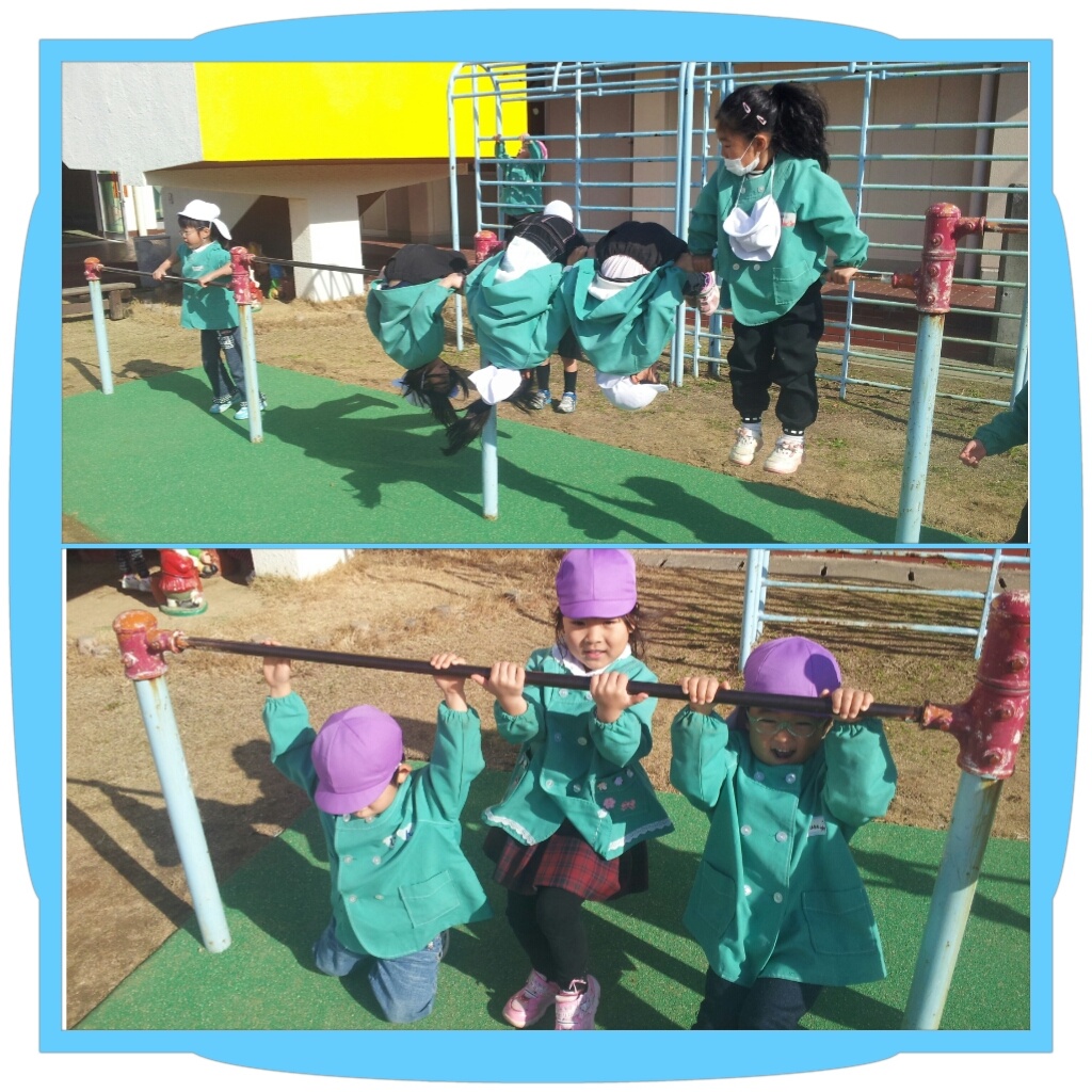 朝、年長組さんがすごく楽しそうに逆上がりをしていました