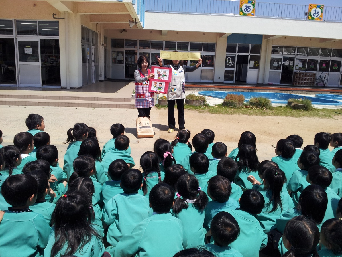 おしゃべりが大好きな子が多いようで(笑)、1つ話すと次々と会話がはずみ、みんなで話をきいては笑っています 進級した時に、「大きい組さんは、小さい組さんに優しくしてあげよう