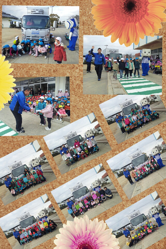 今日は、幼稚園の園庭で佐川急便さんによる交通安全教室がありました